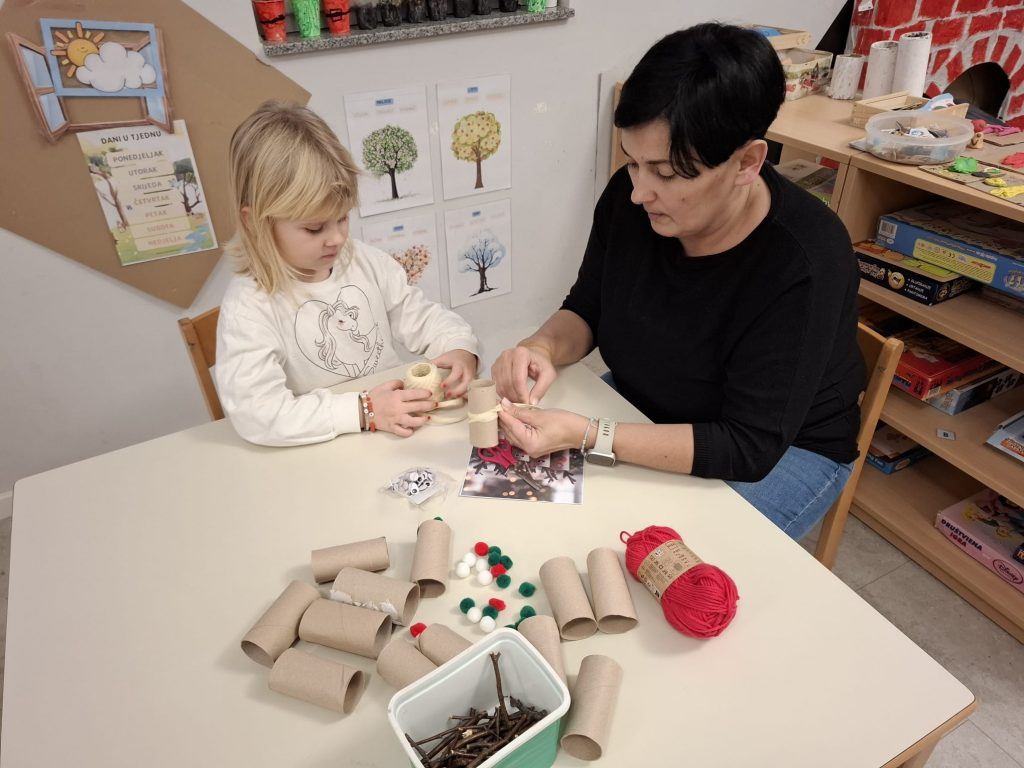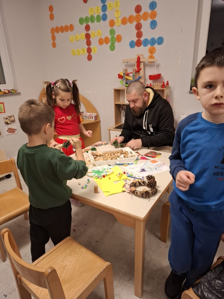 Božićna radionica u Leptirićima bila je ispunjena veseljem i aktivnim sudjelovanjem djece i roditelja. Kroz izradu božićnih dekoracija poticala se samostalnost, kreativnost i zajedničko planiranje, uz njegovanje blagdanskog duha.