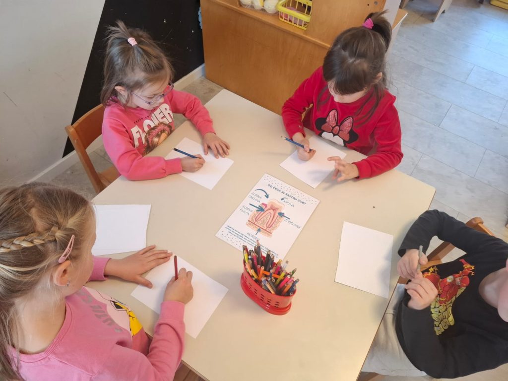Kroz planirane pedagoške poticaje i edukativne sadržaje, naglasak je stavljen na usvajanje pravilnih higijenskih navika te razumijevanje utjecaja prehrane na oralno zdravlje. Cilj ovih aktivnosti bio je potaknuti dječju svijest o redovitoj brizi za zube te preventivno djelovati na strah od dentalnih pregleda.