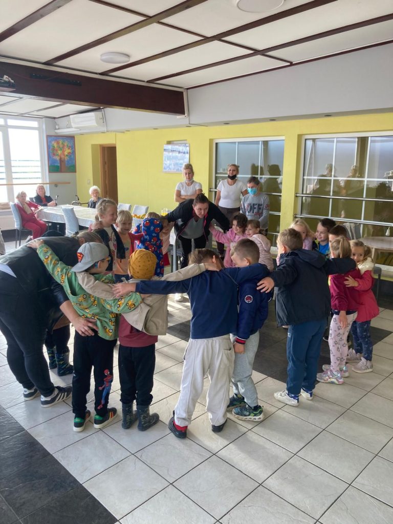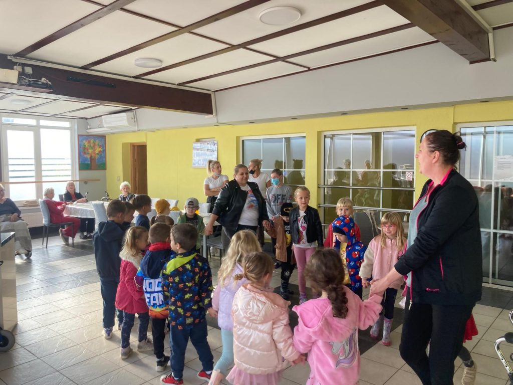 Druženje je proteklo u ugodnom i prijateljskom ozračju, a korisnici doma s velikim su zanimanjem i osmijehom pratili nastup djece te im otpjevali pjesmicu „Zeko i potočić“.